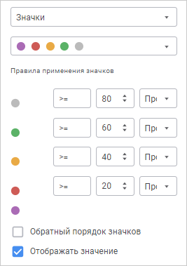 Обратный порядок значков. По умолчанию флажок снят и значки применяются в заданном порядке. При установке флажка значки будут применяться в обратном порядке;