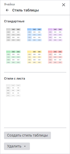 Для применения стиля ячеек к выделенному диапазону ячеек выберите один из стандартных стилей.