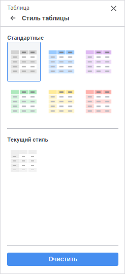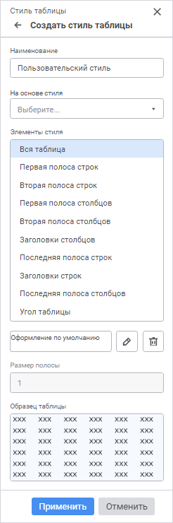 Стиль таблицы. Позволяет применить стандартный или пользовательский стиль в виде таблицы с чередующимся оформлением строк/столбцов;