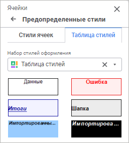 Предопределённые стили. Позволяет применить стандартные стили ячеек или стили из подключенной таблицы стилей.