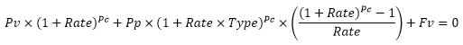 Pv(Rate, PeriodCount, PeriodPayment, FutureValue, Type)