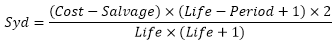 Syd(Cost, Salvage, Life, Period)