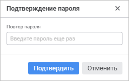 Если был введён пароль, то будет открыто окно «Подтверждение пароля»: