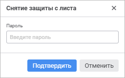 Введите пароль в окне и и нажмите кнопку «Подтвердить». При условии, что пароль был введен верно, защита листа будет снята, и пользователю будут доступны все действия, производимые с отчётом.
