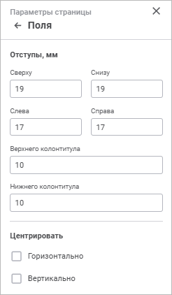 Для расширенной настройки полей страницы используйте группу параметров «Поля» панели параметров: