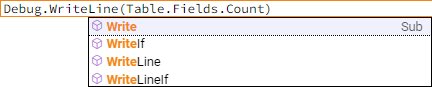 Список элементов кода, доступных для использования в текущей позиции, формируется в виде раскрывающегося списка, упорядоченного по алфавиту. Для вызова списка используется сочетание клавиш CTRL+ПРОБЕЛ. При выборе какого-либо элемента списка для него выводится более подробная информация. Дополнительная информация зависит от типа выбранного элемента и может содержать следующие данные: