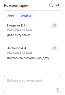 На вкладке указаны все комментарии, добавленные к данной ячейке.