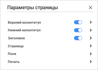 Верхний/нижний колонтитул. Предназначены для настройки верхнего/нижнего колонтитула;