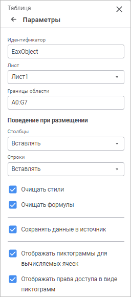 Для очистки оформления, применённого на листе, в таблице установите флажок «Очищать стили». Очищение оформления в таблице будет происходить только при обновлении отчёта.