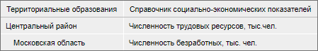 для элемента «Московская область» измерения «Территориальные образования» данные по численности безработных измерения «Справочник социально-экономических показателей».