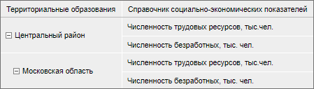 Например, источником данных является стандартный куб «Куб социально-экономических показателей», содержащий четыре измерения: «Календарь» в столбцах, «Территориальные образования» и «Справочник социально-экономических показателей» в строках, «Факты» зафиксировано. Необходимо вывести данные по занятости населения: