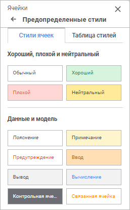 Предопределённые стили. Позволяет применить стандартные стили ячеек или стили из подключенной таблицы стилей.