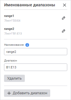 выполните команду «Данные > Именованные диапазоны» в главном меню;