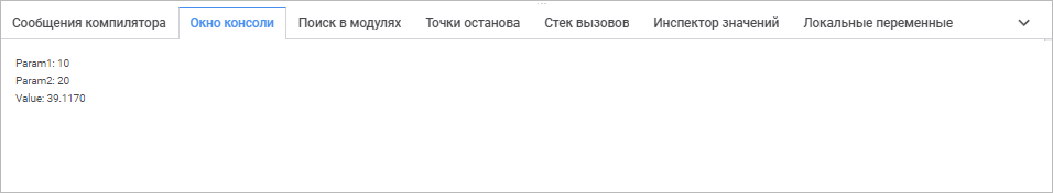 Окно консоли предназначено для вывода различной промежуточной информации во время отладки модулей/сборок: