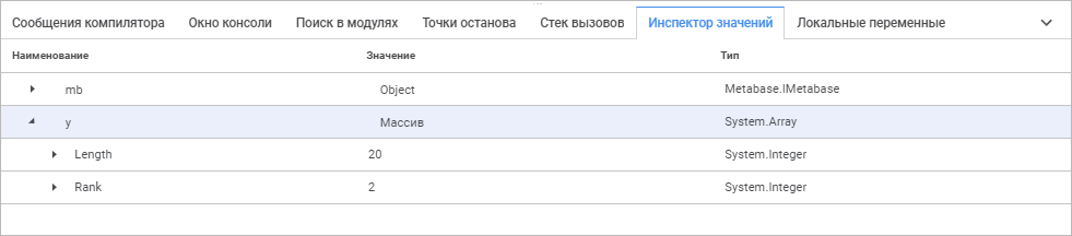 Инспектор значений позволяет вычислять различные выражения во время отладки кода.