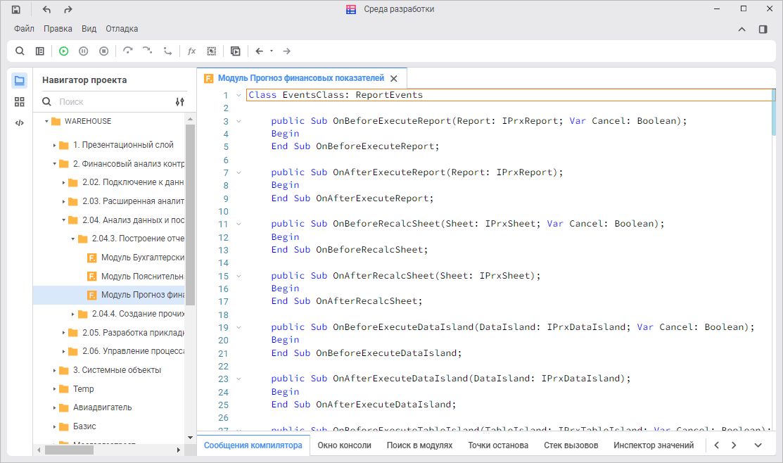 Для начала работы смотрите статью «Начало работы с инструментом «Среда разработки».