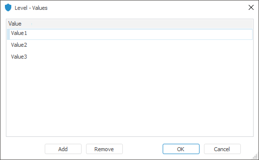 On selecting the checkbox in the Multiple column. Several attribute values are set using the <attribute name> - Values dialog box: