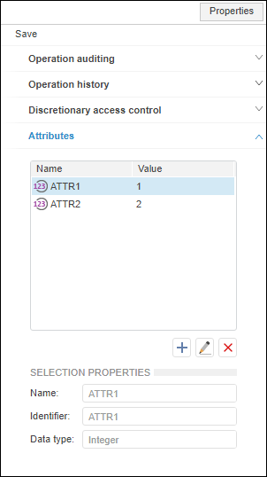 To add or edit added attributes for specific object type, use the Attributes tab on the Properties side panel in the web application and in the Access Control Settings dialog box in the desktop application.