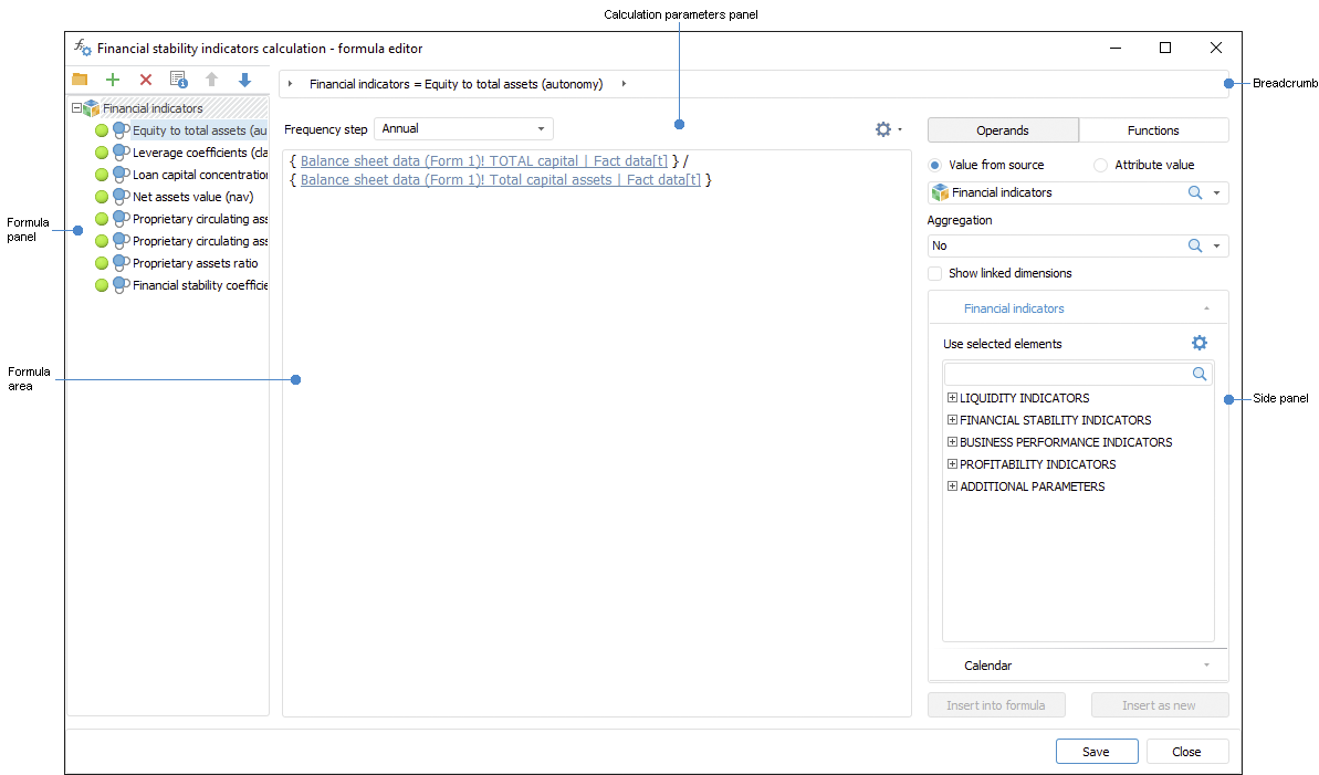 Calculation formulas determine how data from sources will be transformed before loading to data consumer.