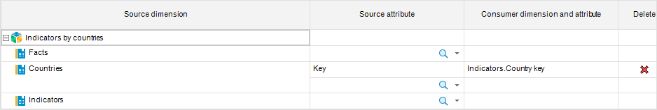 A link is set up between the Key attribute in the Countries dimension and the Country Code attribute in the Indicators dimension: