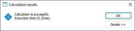 After the calculation is completed, the dialog box containing results opens. If an error occurred on calculation, the corresponding message is displayed.