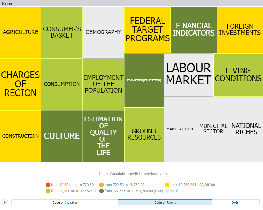 The Tree Map visualizer is used to graphically display table data as a set of nested rectangles with value frequency in time.