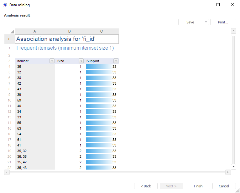 Example of the Association Analysis analysis results: