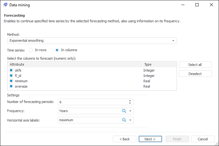 NOTE. Forecasting analysis type is available for all tools of Foresight Analytics Platform, except for the time series analysis tool.