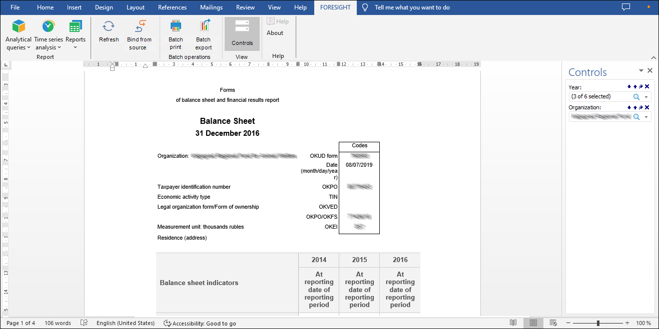 The Foresight Word Add-in add-in enables the user to work with Foresight Analytics Platform using Microsoft Word as a workspace. It is used to create text reports using the Analytical Queries (OLAP), Time Series Analysis, Reports tools.