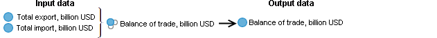 Then the sequential modelling of balance of trade is described as example. Balance of trade is the difference between export and import, thus the modelling is quite simple: