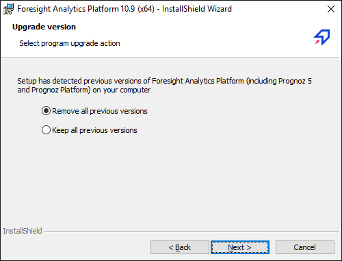Keep All Previous Versions. All existing versions of Prognoz Platform and Foresight Analytics Platform are kept.