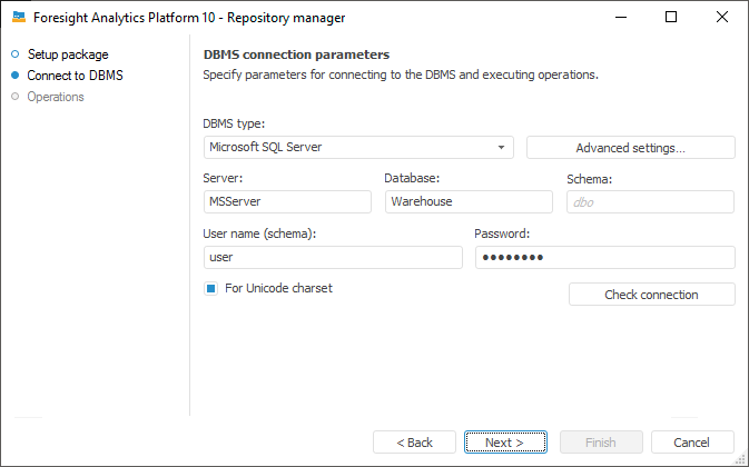 Click the Next button to start creation of an MDM metadata repository, at the same time, the operation progress is shown: