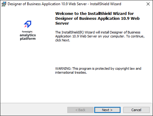 Then, select the folder to which the back end files will be installed. The default folder is C:\Program Files (x86)\Foresight\. To change the folder, click the Change button. The Designer of Business Application 10.x Web Server directory will be created in the selected folder after installation.