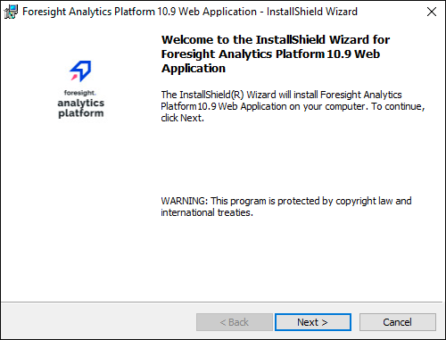 To start the installation, run the FP10WebServer.exe file. After starting, the installation program checks for an earlier version of Foresight Analytics Platform, and if earlier versions are found, it will be prompted to update Foresight Analytics Platform.