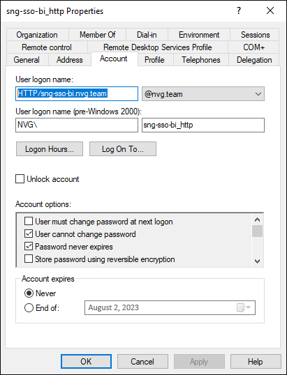 Registered ServicePrincipalNames for CN=sng-sso-bi_http,OU=Kerberos,OU=NVG,DC=nvg,DC=team: