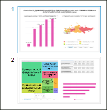 The slide panel is displayed to the right of the working area. The panel is used to work with slides and displays all slides contained in a dashboard. The panel enables the user to create, delete, edit order of slides and other actions with slides.