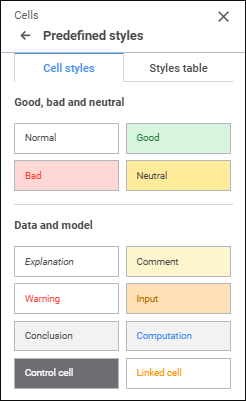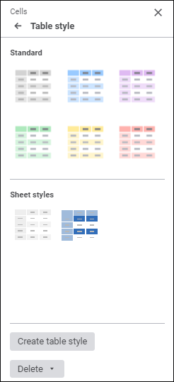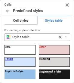 NOTE. Sheet styles are displayed in the Table Style group of parameters if at least one formatting style is applied.