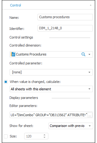 Controlled Dimension. Use the drop-down list to select the dimensions, which will be controlled by the control.