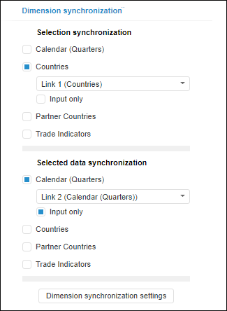 Dimension synchronization enables the user to control element selection in a number of dashboard blocks at a time.