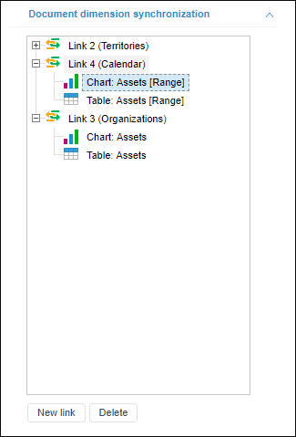 NOTE. Dimension synchronization is not set up automatically, even if the blocks configured to the same data source are created. All synchronization settings are determined by the user.
