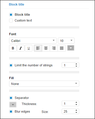 The title is displayed and the following parameters are available if the Block Title checkbox is selected: