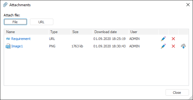 To explain data in table cells, you can link attachments as files or URLs. To link attachments, use the Attachments dialog box.
