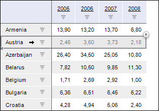 To select a single table element, select it by clicking the element header in the heading or sidehead: