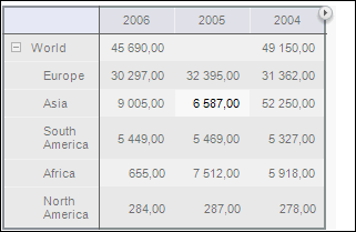 A data table consists of several main elements, each of them has its own settings. If a table element is selected, the settings determined on the side panel and on the Format ribbon tab will be applied to the selected element. When a single cell selected, the settings will be applied to the entire table.