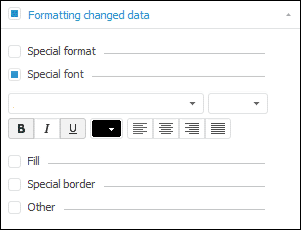 To enable changed data formatting settings, select the checkbox in the tab header: