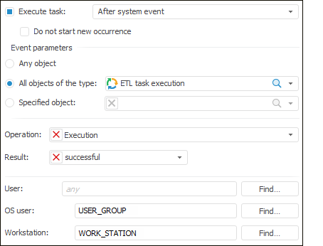 After executing the operations the task is started for execution after the system event occurred by specified parameters.