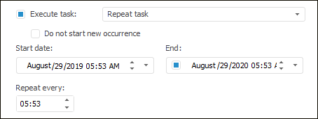 Repeat Every. It sets the time interval in hours and/or minutes, in which the task should be started for execution.