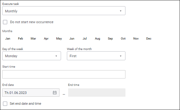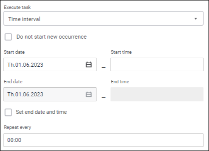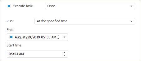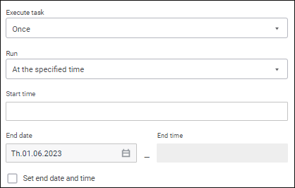 After executing the operations the task is started for execution once according to the selected start mode and is finished at the selected time, if it is set.