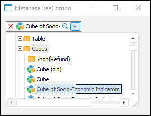 The MetabaseTreeCombo component is used to display the repository object tree as a drop-down list.