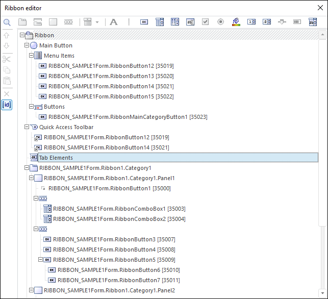 NOTE. Due to some peculiarities of implementation, the additional buttons created in the Buttons group are arranged in reverse order after starting the form. Consider this when creating a ribbon using the editor.